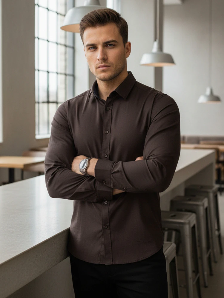 Přidání recenze k Pánská elegantní hladká tmavě hnědá košile SLIM FIT FashionStreet DX2682