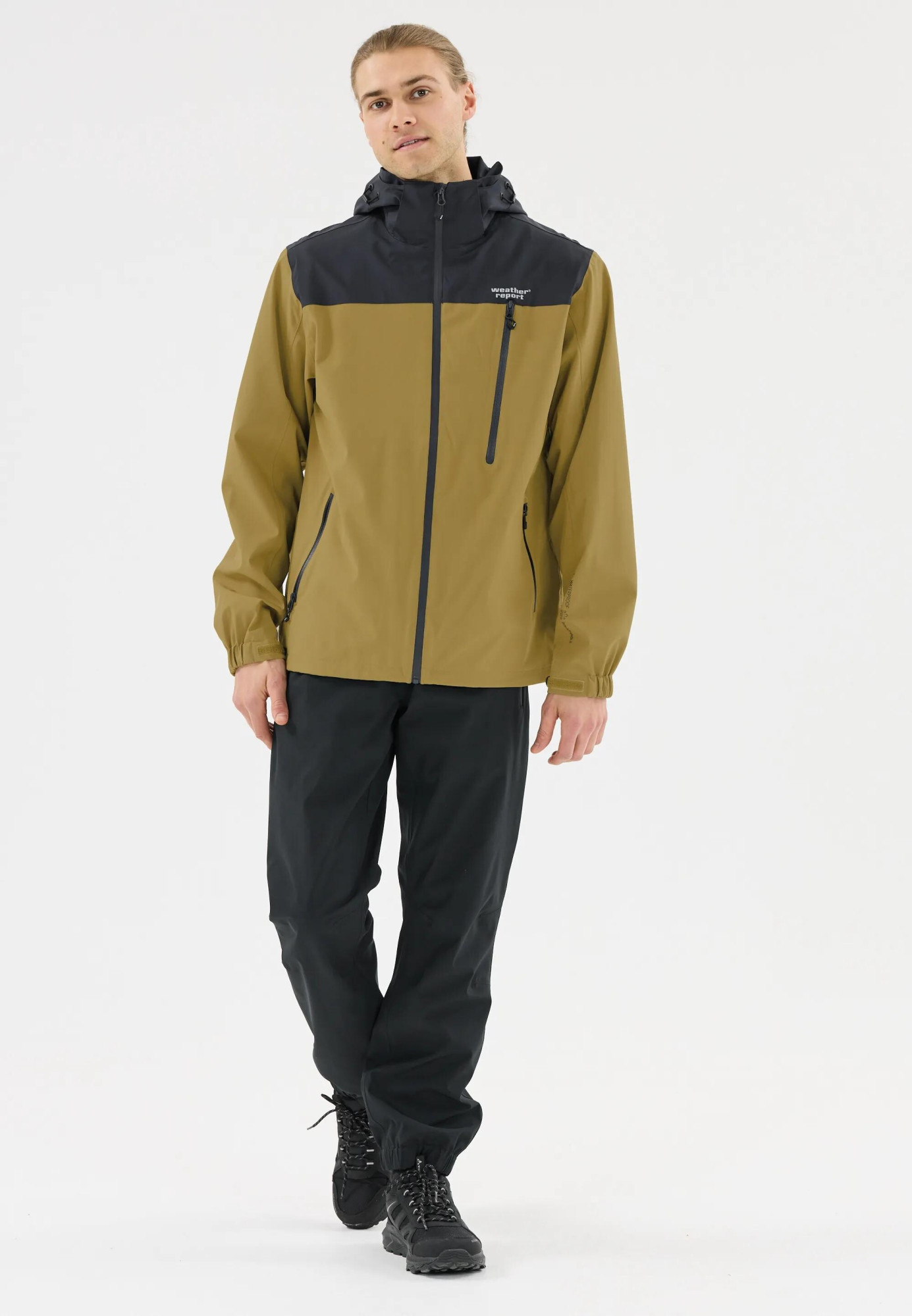 Vysoký límec, nastavitelná kapuce s kšiltem a kvalitní zipy YKK přispívají k ochraně proti nepřízni počasí.