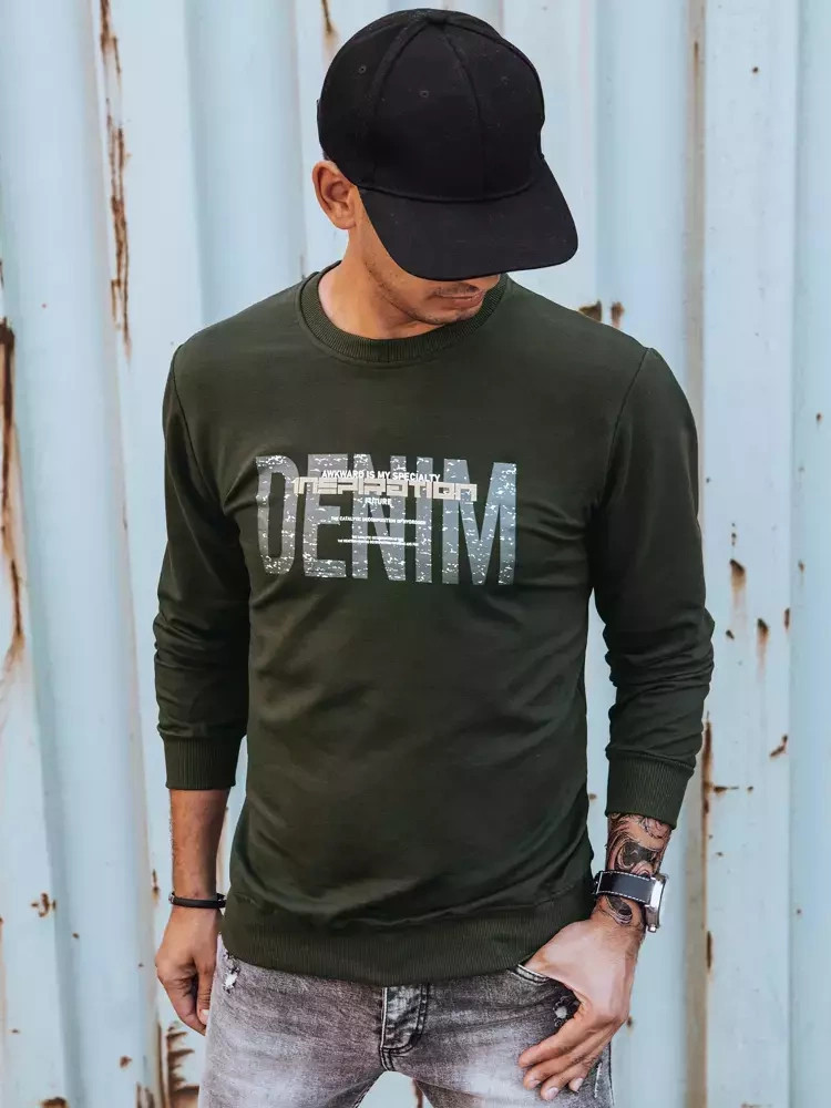 Pánská khaki mikina s potiskem Dstreet BX5358
