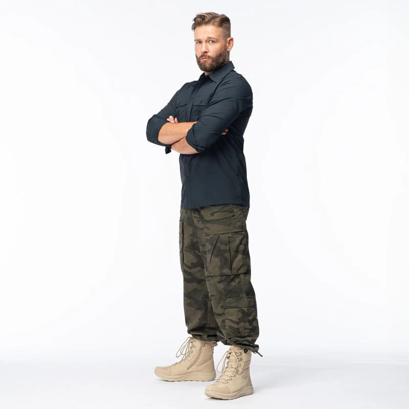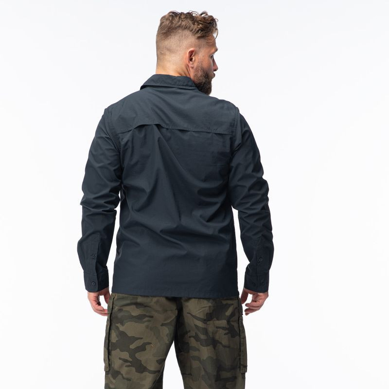 Pánská černá košile MAGNUM DEFENDER s dlouhým rukávem je praktickým kouskem oblečení nejen pro uniformované pracovníky. Klasický střih košile se zapíná na knoflíky a neomezuje v pohybu. Síťovaný panel v horní části zlepšuje prodyšnost. Košile DEFENDER má navíc dvě kapsy na trupu a manžety na knoflíky.