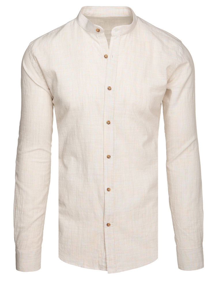 Pánská košile s dlouhým rukávem a stojáčkem ve světle béžové barvě FashionStreet DX2658