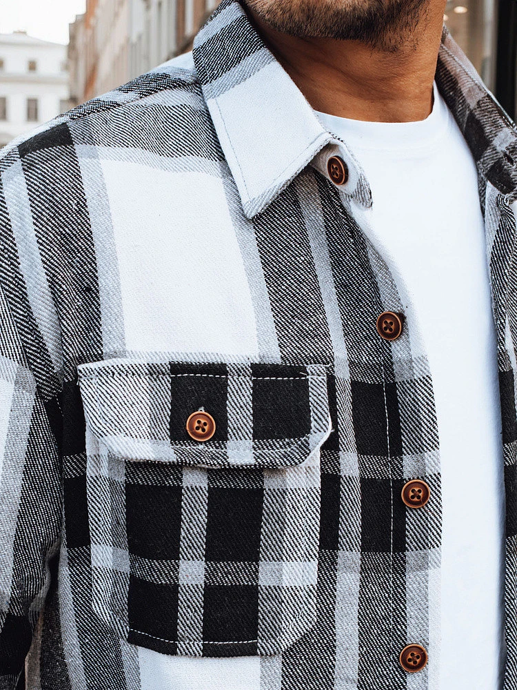 Pánská kostkovaná flanelová košile DX2673 černobílá - FashionStreet