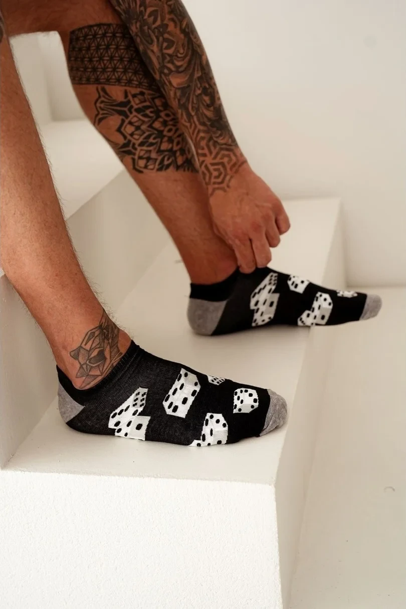 Męski styl z nutą zabawy – stopki MILENA z motywem kostek do gry