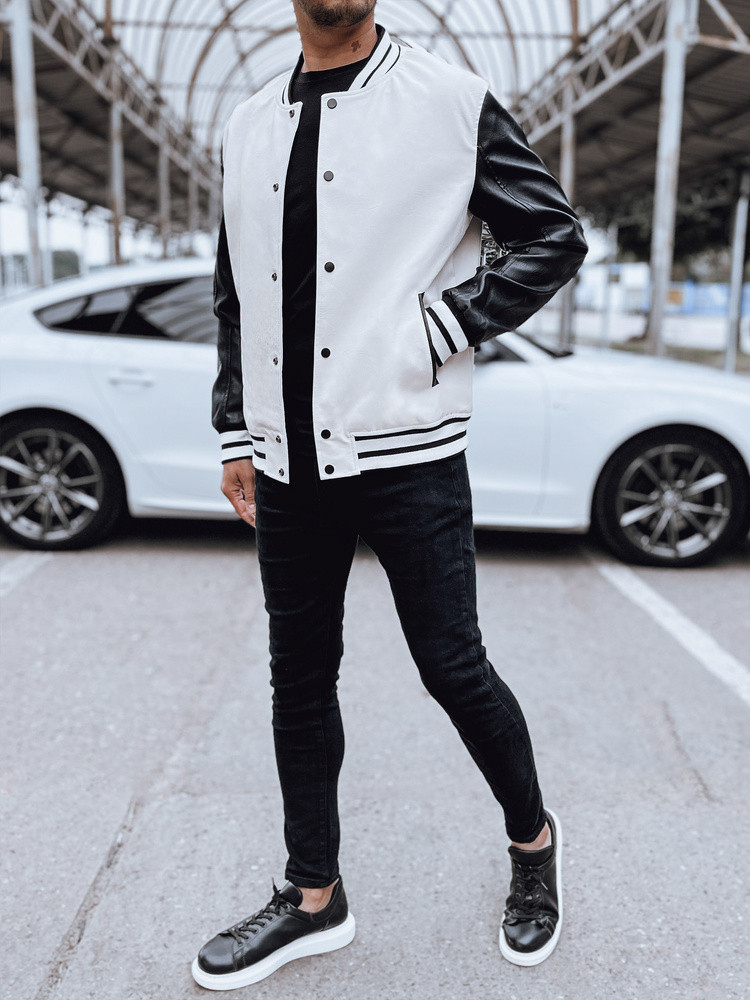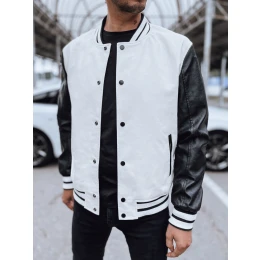 Pánská kožená baseballová bunda v barvě ecru FashionStreet TX4708