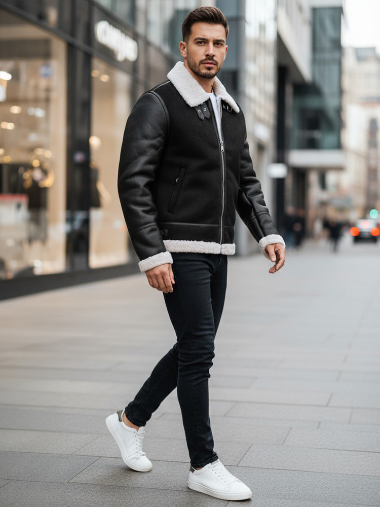 Kurtka męska skórzana z kożuchem TX5085 czarna