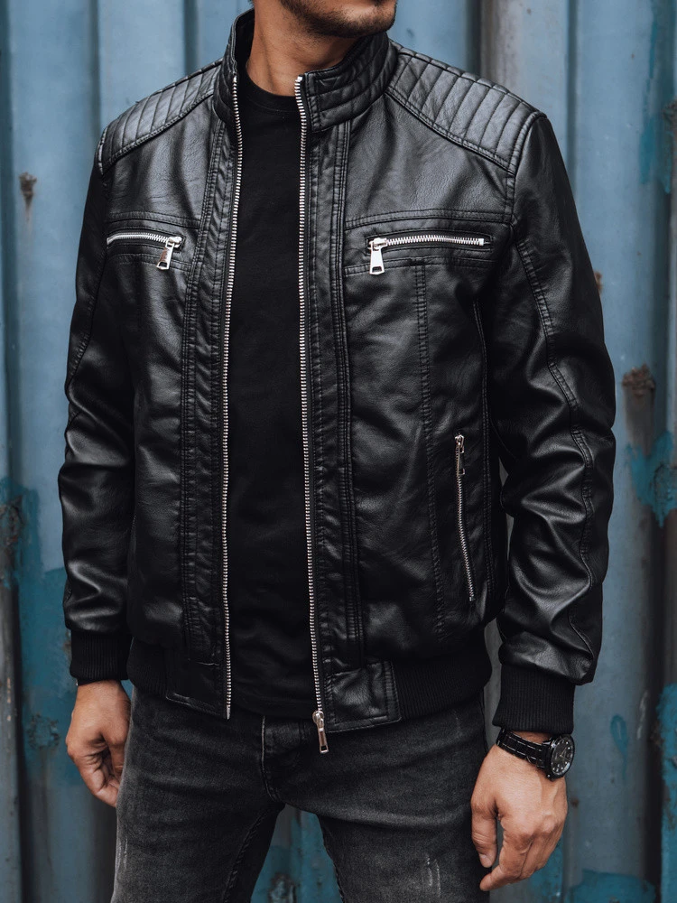 Pánská kožená bunda černá FashionStreet TX4739