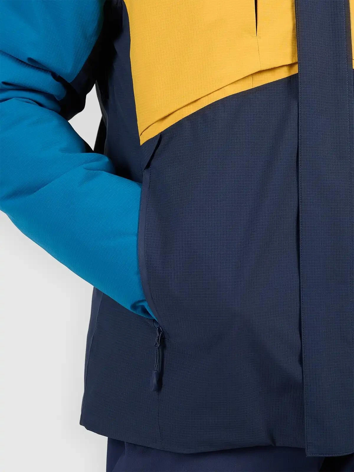 Bunda nabízí řadu praktických kapes – dvě náprsní kapsy na zip, vnější kapsy na ruce se zipem, kapsu na skipas, vnitřní kapsu na brýle a vnitřní kapsu se zapínáním na suchý zip.