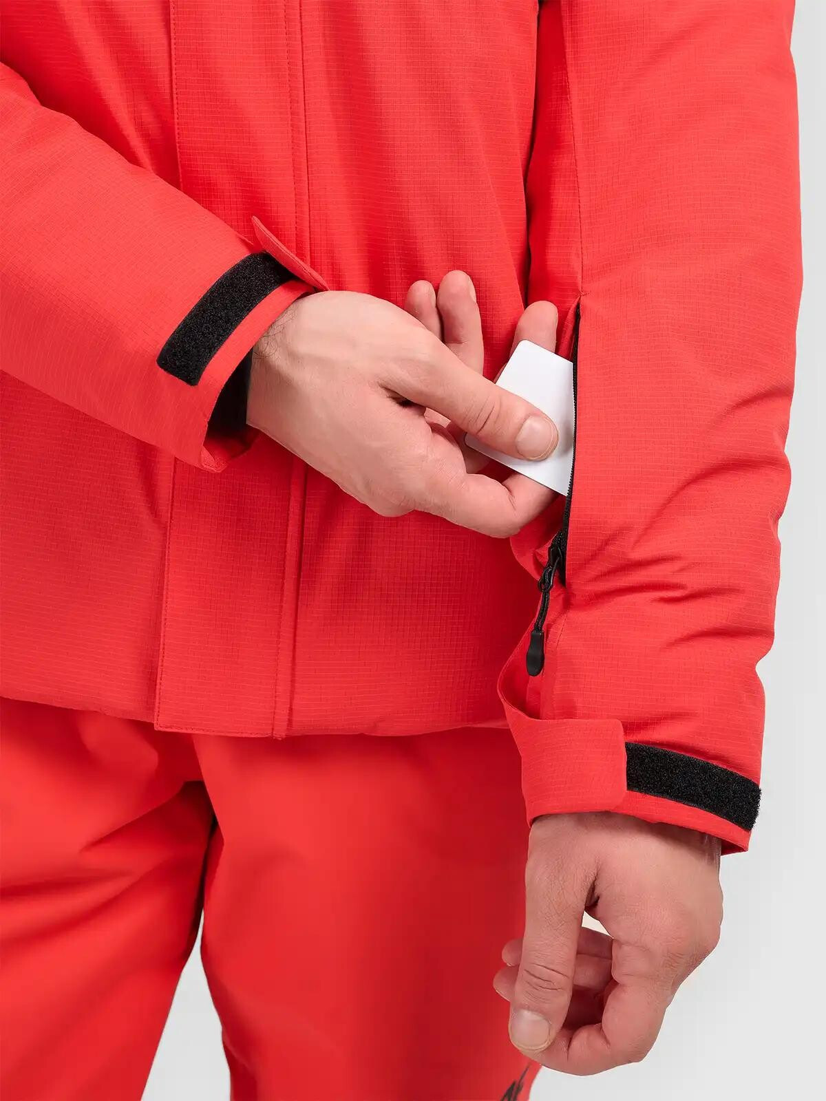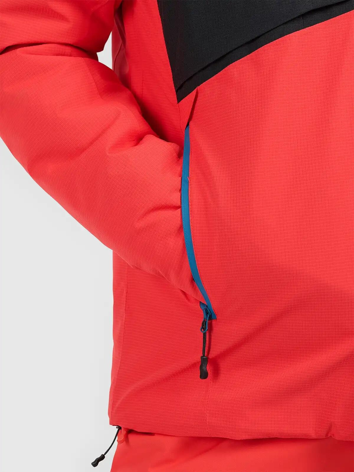 Bunda nabízí řadu praktických kapes – dvě náprsní kapsy na zip, vnější kapsy na ruce se zipem, kapsu na skipas, vnitřní kapsu na brýle a vnitřní kapsu se zapínáním na suchý zip.