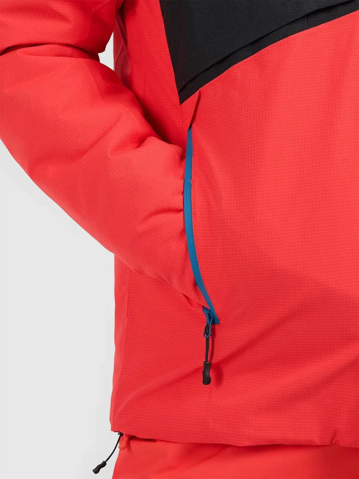 Integrovaný sněhový pás a spodní lem nastavitelný elastickou stahovací šňůrkou se zarážkou poskytují další ochranu a pohodlí.