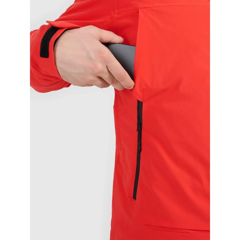 Čtyři vnější kapsy na zip (dvě na bocích a dvě na hrudi), kapsa na skipas, otevřená kapsa na brýle a vnitřní kapsa na suchý zip na drobnosti. Integrovaný sněhový pás se zapínáním na druky a vnitřní a vnější manžety se suchým zipem a elastickými vsadkami chrání před sněhem a chladem.