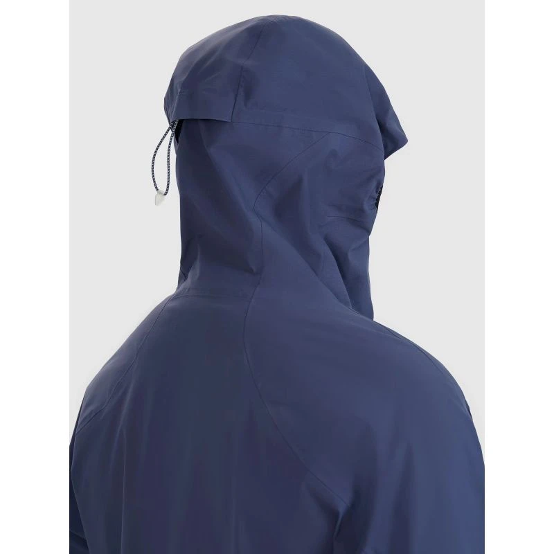 Zintegrowany kaptur z daszkiem oraz regulacją głębokości i objętości chroni głowę przed deszczem, a wentylacja pod pachami ułatwia utrzymanie odpowiedniej temperatury ciała podczas intensywnego wysiłku.