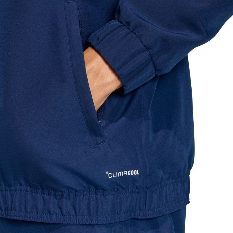 Pánská mikina adidas Entrada 26 Presentation v tmavě modré barvě JZ6619 Tato pánská mikina z fotbalové řady Entrada značky adidas je vybavena technologií Climacool, která odvádí pot a rozptyluje jej pro lepší prodyšnost, bočními kapsami, spodním lemem a manžetami s pružným lemem, vyšitým logem Badge of Sport. Materiál: 100% recyklovaný polyester.