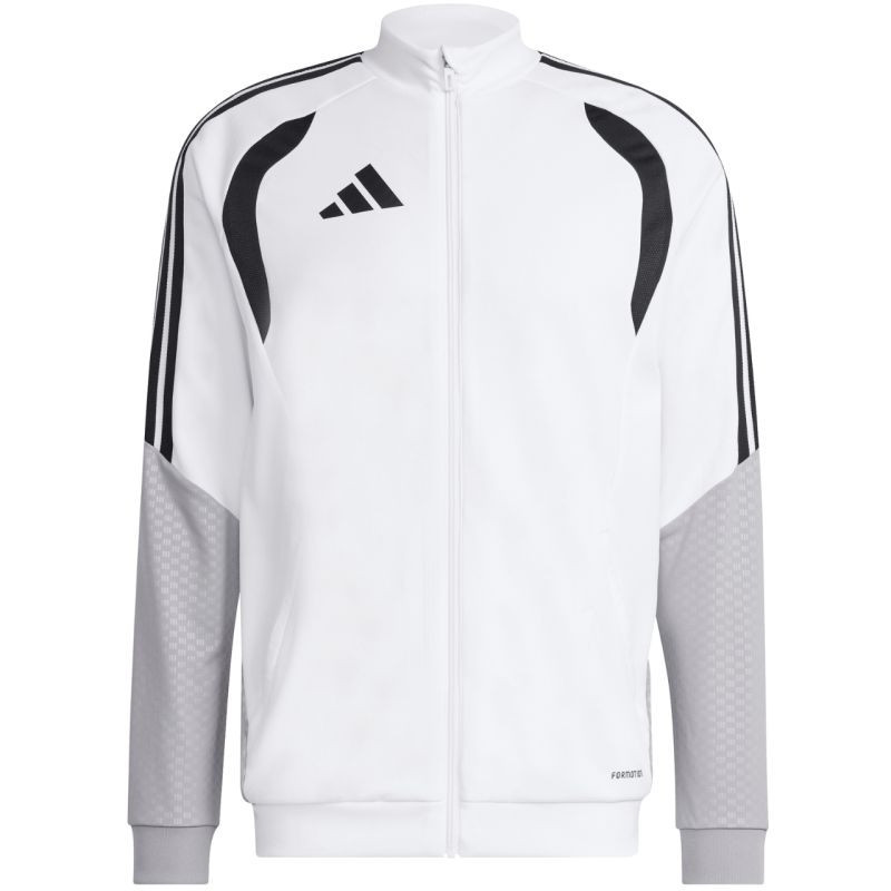 Pánská fotbalová mikina adidas Tiro 26 Competition Training White KA7682 Tato pánská fotbalová mikina adidas je ideální na trénink. Stojatý límec. Dlouhý zip s ochrannou légou. Přizpůsobený střih. Technologie Formotion pro větší pohyblivost. Vložky ze síťoviny na hrudi. Pruhy na ramenou. Subtilní logo na hrudi. Reliéf na rukávech a bocích. Rychleschnoucí vlákna. Materiál: 100% recyklovaný polyester.