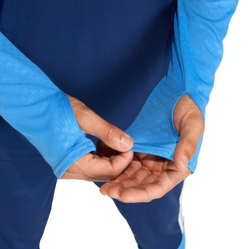 Pánská tréninková mikina adidas Tiro 26 Competition Training Top navy blue JY6398 Tato pánská fotbalová mikina adidas je ideální na trénink. stojáček. krátký zip s ochrannou légou. přiléhavý střih. technologie formotion pro skvělou pohyblivost. síťované vsadky na hrudi. pruhy na ramenou. decentní logo na hrudi. ražba na rukávech a bocích. rychleschnoucí vlákna. otvory na palce na rukávech. materiál: 100% recyklovaný polyester.