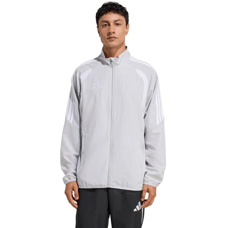 Pánská mikina adidas Tiro 26 League Presentation světle šedá JZ9050 Tato pánská mikina značky adidas je ideální pro chvíle, kdy odpočíváte mimo lajny. Model Tiro line. Vyšívané logo. 3 pruhy. Lehká tkaná konstrukce. Recyklovaná polyesterová vlákna. Standardní střih. Zip po celé délce. Boční kapsy na zip. Elastické manžety. Materiál: 100% recyklovaný polyester.