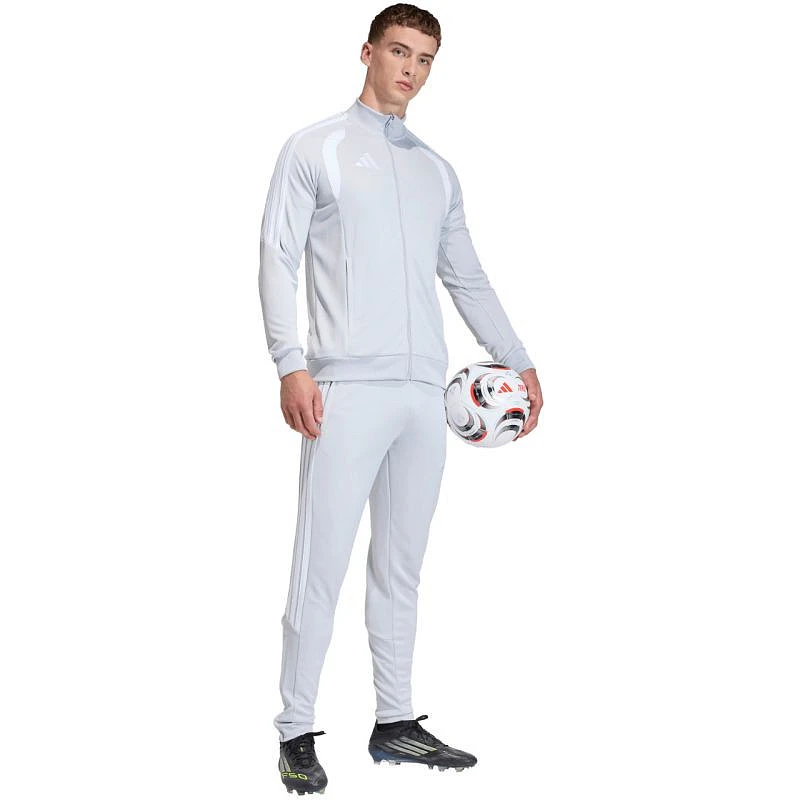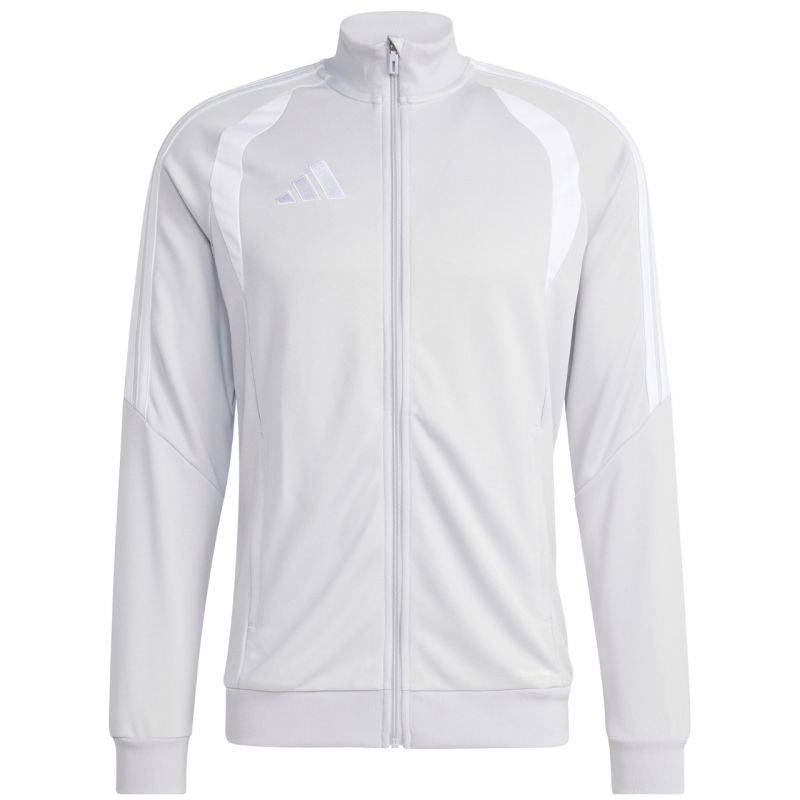 Pánská mikina adidas Tiro 26 League Training šedá JY7204 fotbalová mikina na trénink pro muže. stojáček. zip po celé délce. přiléhavý střih. technologie climacoool pro absorpci a odvod vlhkosti. síťované vsadky na hrudi. boční kapsy na zip. nášivka na ochranu brady. pruhy na rukávech. decentní logo. recyklovaná vlákna. materiál: 100% recyklovaný polyester.
