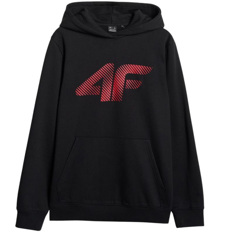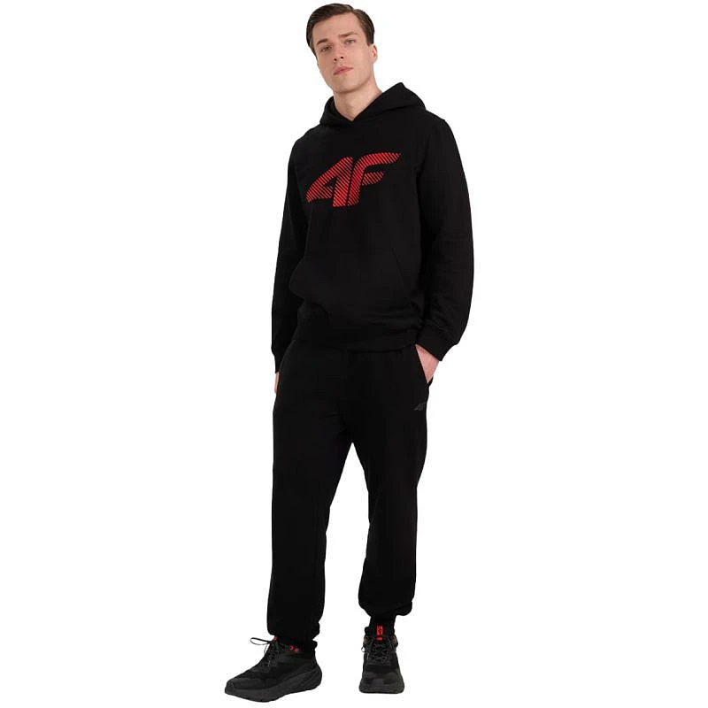 Bluza męska 4F M1766 głęboka czerń 4FWMM00TSWSM1766 020S Męska bluza 4F pozwoli na tworzenie wygodnych stylizacji idealnych na co dzień. Dane techniczne:· Materiał główny: 80% bawełna, 20% poliester· Materiał dodatkowy: 95% bawełna, 5% elastan· Jednostronnie czesane wnętrze zapewnia dodatkowe ciepło· Krój: regular, który wygodnie dopasowuje się do sylwetki· Standardowy fason sięgający do bioder· Wykonana w 80% z bawełny, dzięki czemu jest miękka, trwała i przyjemna w dotyku· Dodatek poliestru (20%) sprawia, że materiał jest wytrzymały i odporny na zużycie przez wiele sezonów· Jednolita kolorystyka pasująca do wielu stylizacji· Miękka w dotyku dzianina single jersey o gładkiej powierzchni· Dekolt ze zintegrowanym kapturem· Mankiety ze ściągaczem· Nadruk z przodu "4F"· Niezapinana kieszeń kangurka na przodzie· Wkładana przez głowę· Dół ze ściągaczem