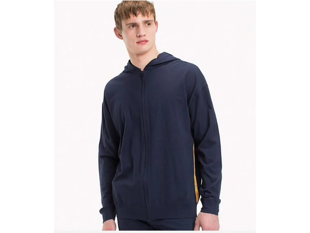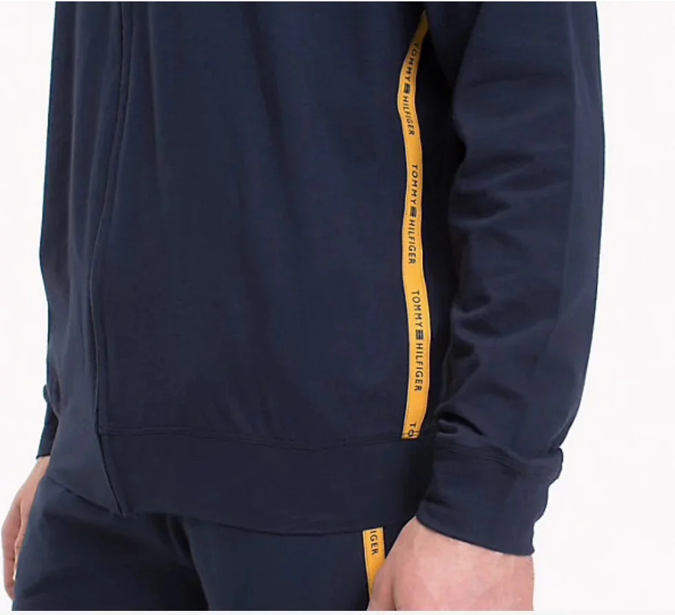 • opakující se logo Tommy Hilfiger na pruhu po stranách