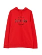 - Model v červené barvě s černou textovou grafikou na přední straně.