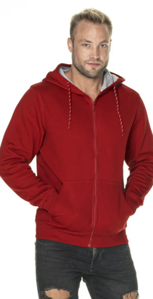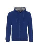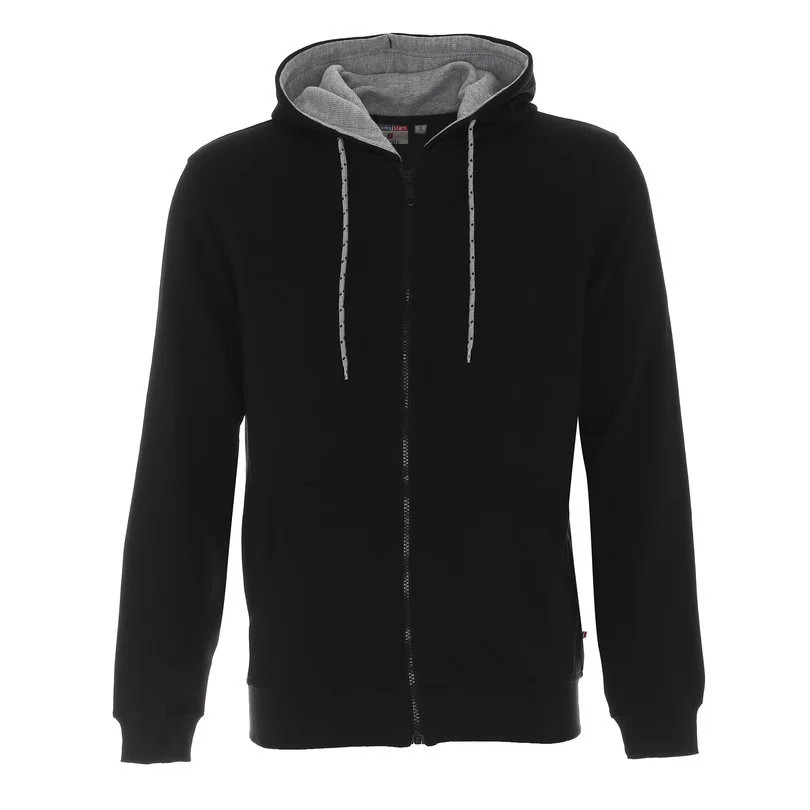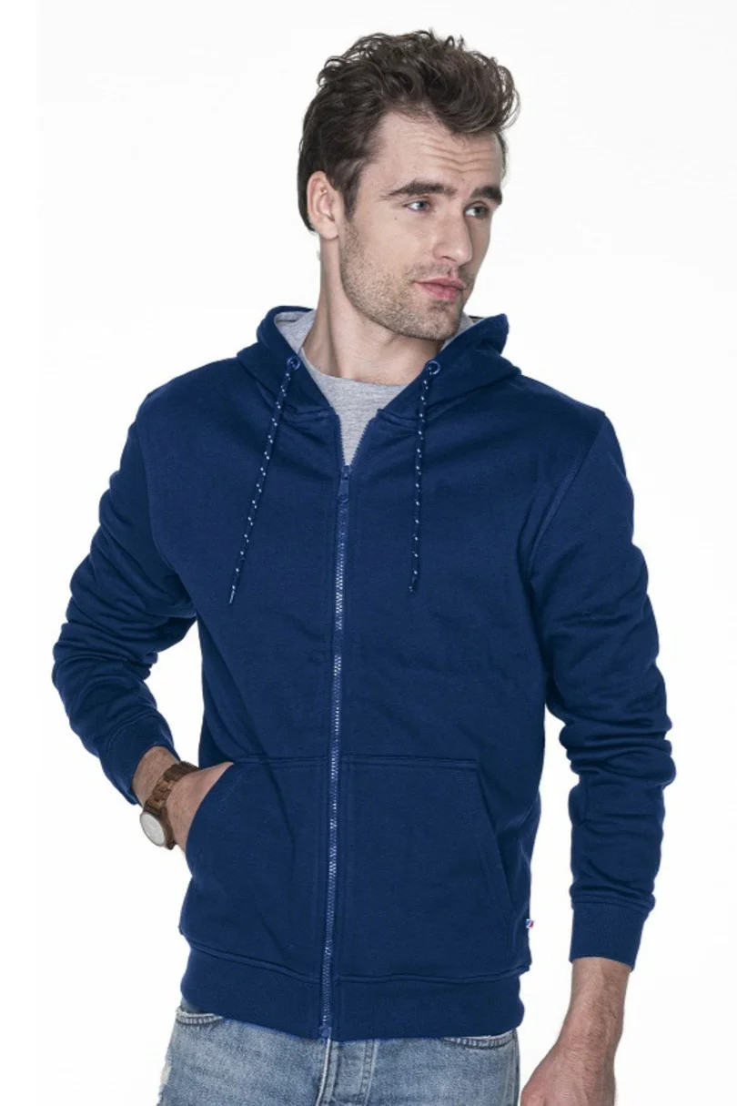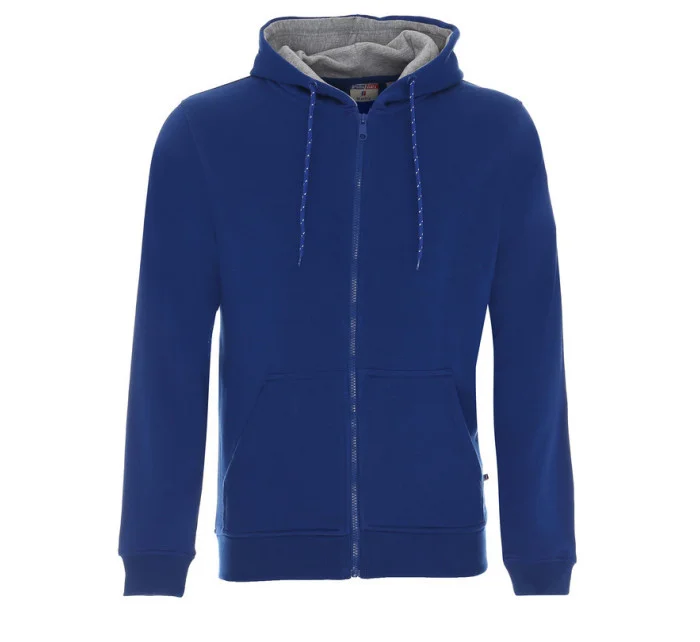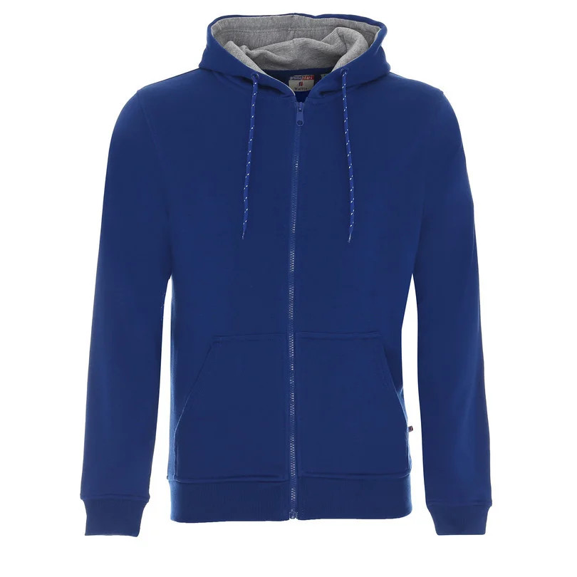 Pánská mikina s kapucí. Vnitřní strana česaná, vnější strana je odolná proti žmolkování. Kapuce má vevnitř kontrastní barvu a reguluje se ozdobnou šňůrkou. Zip je umělohmotný. Vpředu jsou dvě velké kapsy. Rukávy a spodní okraj zakončené pružným lemem.