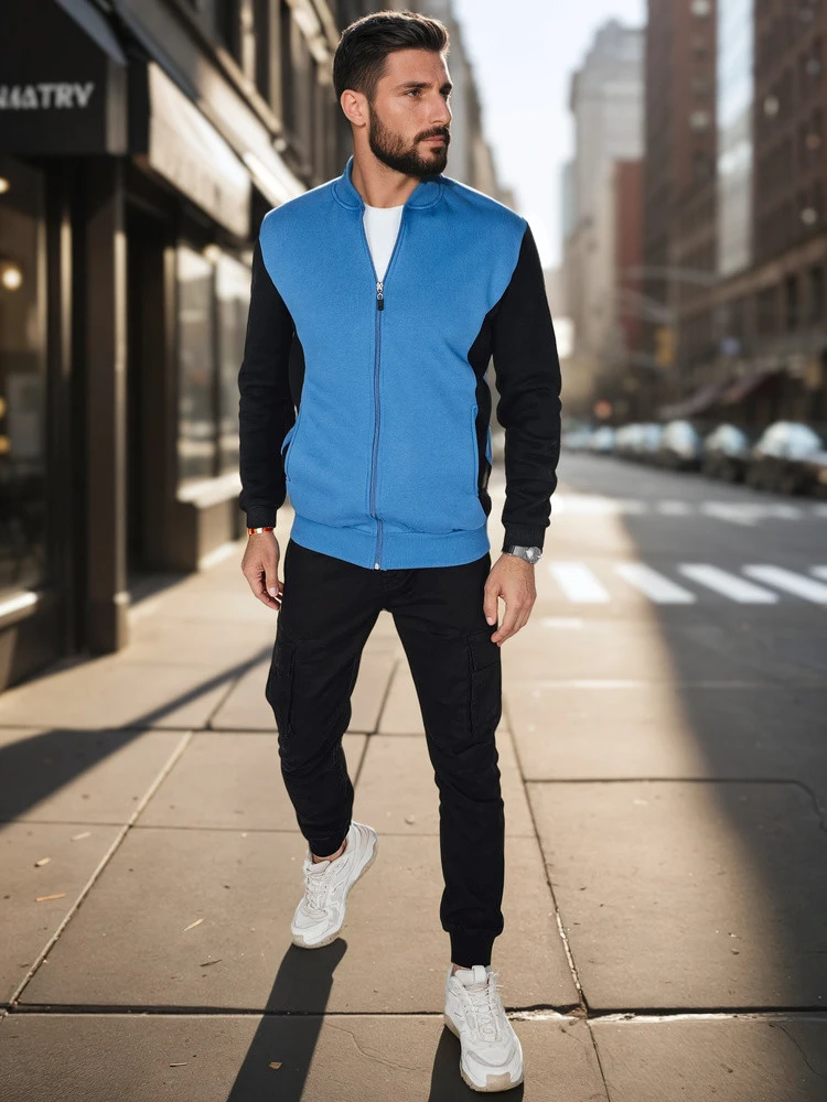 Pánská mikina na zip se stojáčkem modrá FashionStreet BX5905
