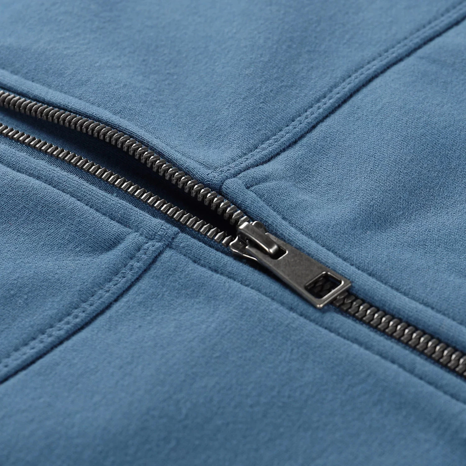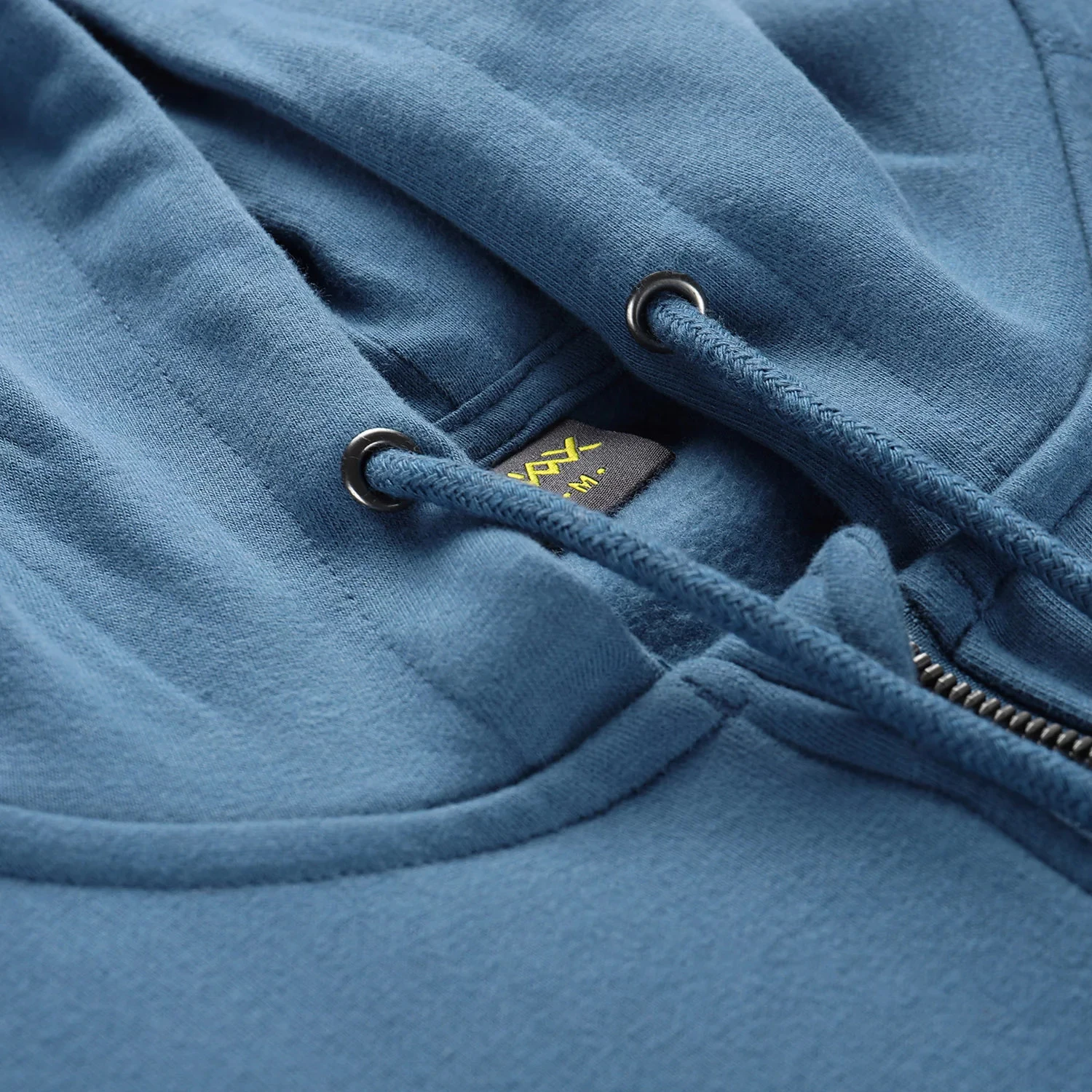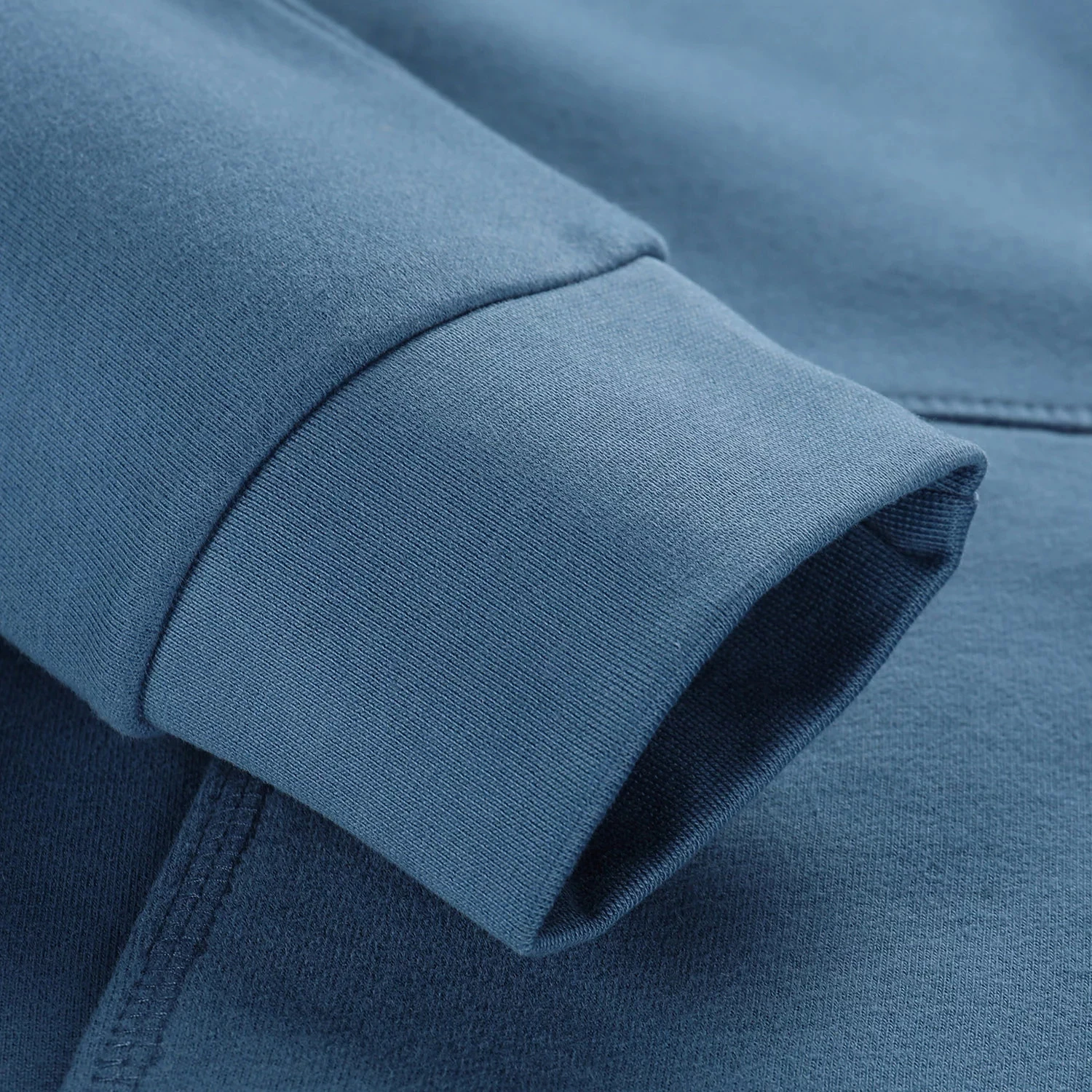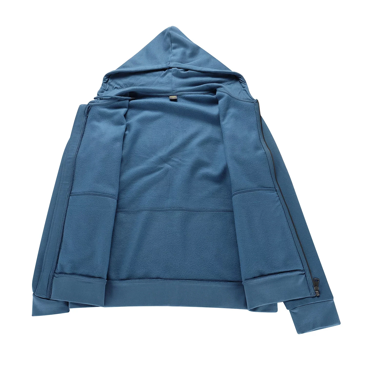Mikina má praktický polopřiléhavý střih a dlouhý zip pro snadné oblékání. Dvojitá kapuce se stahováním chrání před chladem i větrem. Rukávy a spodní lem jsou zakončeny žebrovaným úpletem pro lepší držení tvaru. Nechybí dvě prostorné kapsy a stylový potisk na předním dílu.