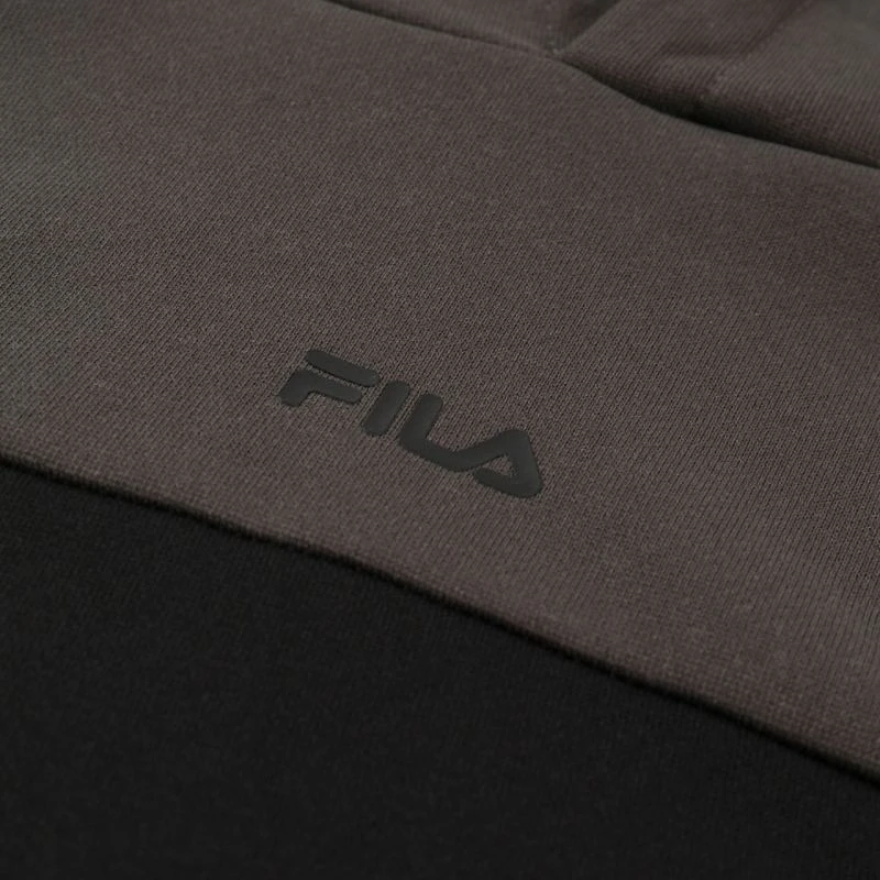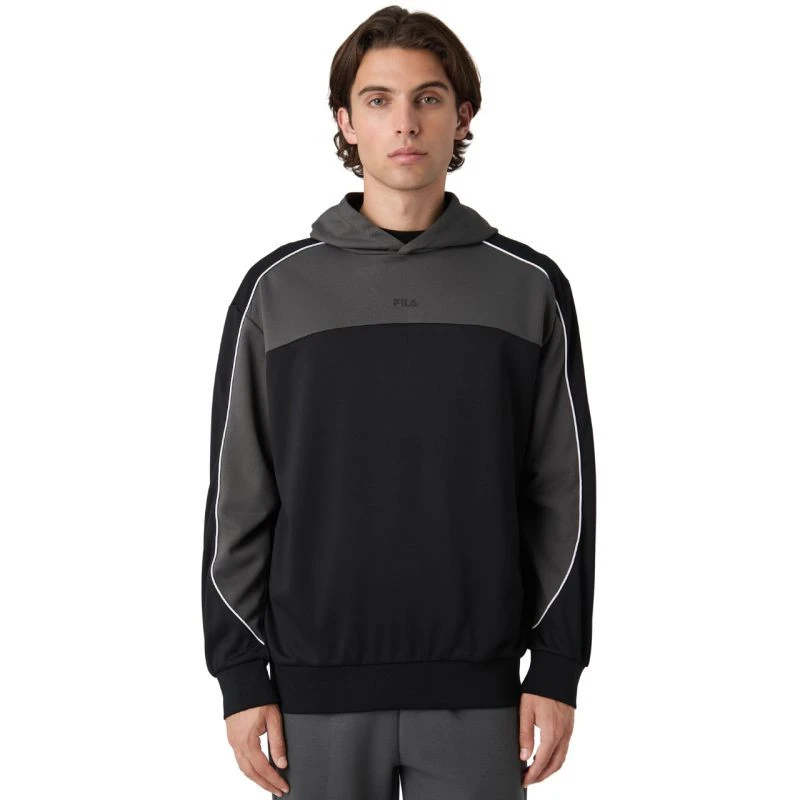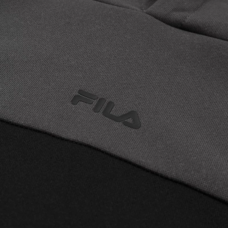 Bluza męska Fila Rivoli czarno-szara FAM1121 83033 Bluza dla mężczyzn Fila sprawdzi się podczas codziennego użytkowania. Wkładany przez głowę fason. Luźny krój. Niewielkie logo. Szybkoschnący materiał. Kaptur bez regulacji. Materiał: 100% poliester