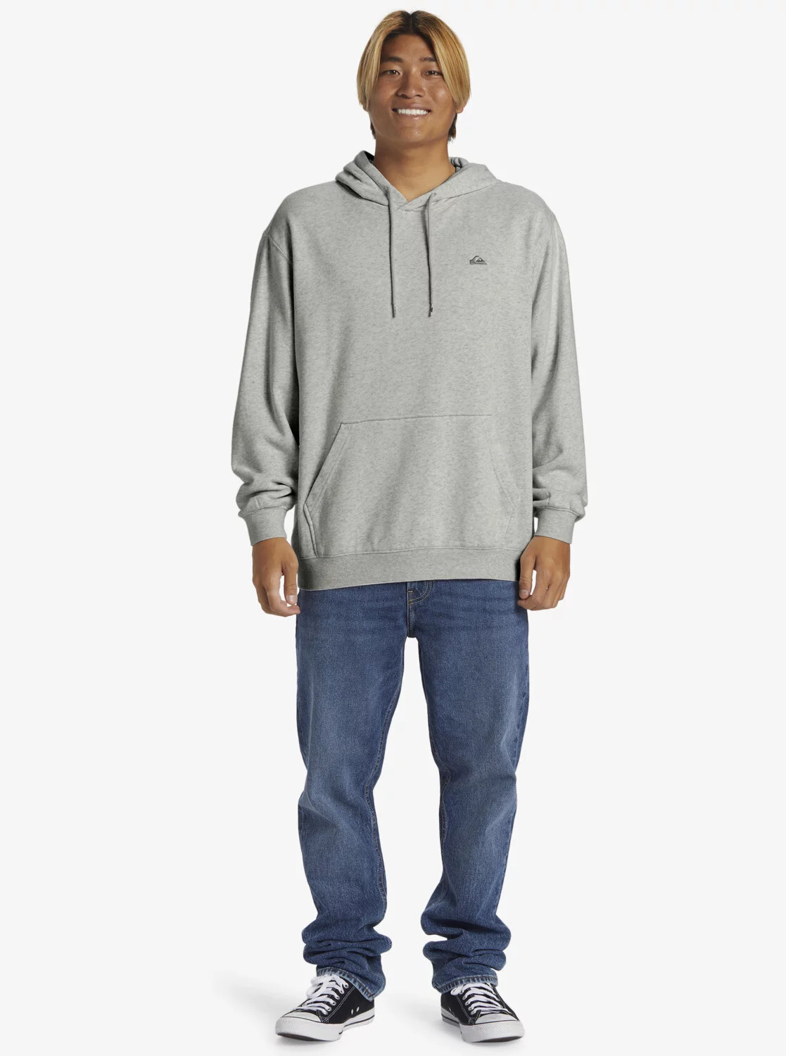 Výšivka loga na levé straně hrudníku a štítek na bočním švu dodávají mikině autentický vzhled.