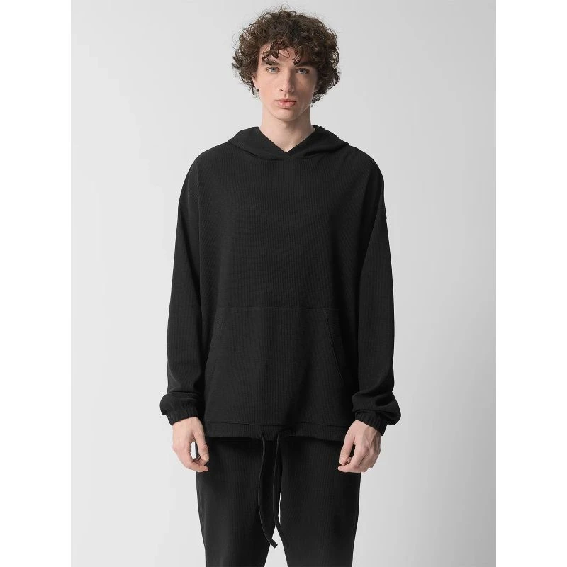 Męska bluza dresowa na co dzień Outhorn.Waflowa dzianina o gramaturze 250 gsm z wysoką zawartością bawełny i dodatkiem poliestru będzie przyjemna w noszeniu oraz zachowa formę na wiele sezonów. Bluza posiada kaptur bez regulacji. Obniżona linia ramion i rękawy wykończone ściągaczem z gumą. Dół z regulacją ze sznurkami. Kieszeń kangurka.