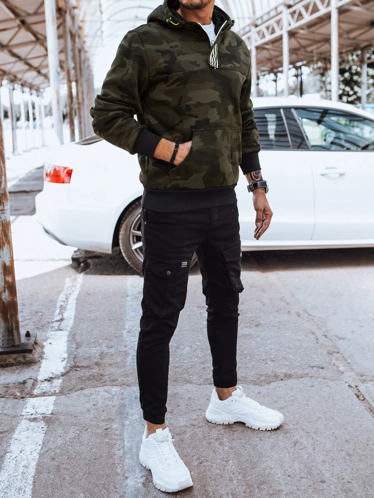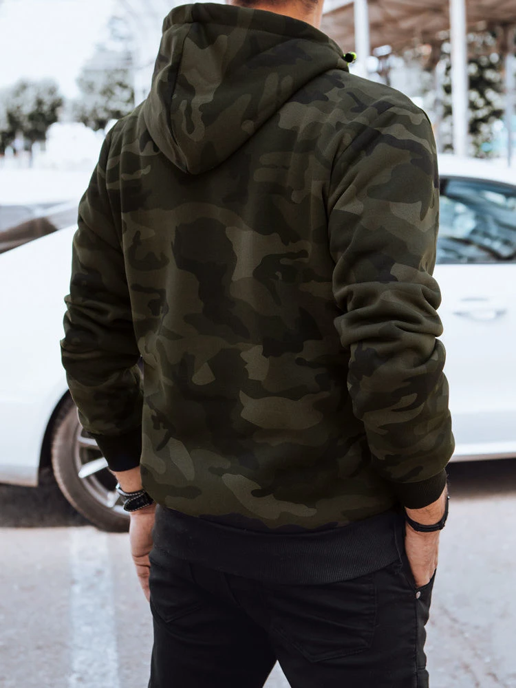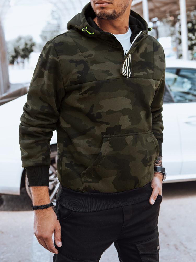 Pánská mikina s kapucí moro zelená model 21970372 - Dstreet