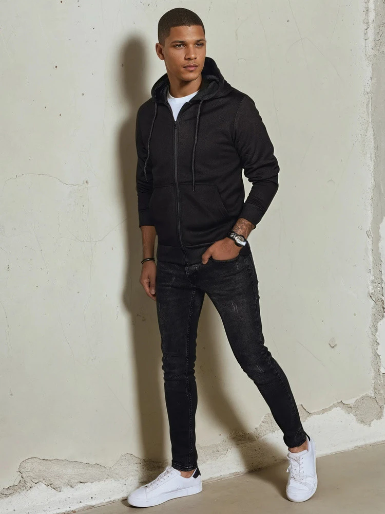 Pánská mikina s kapucí na zip černá Dstreet model 21972055 - FashionStreet