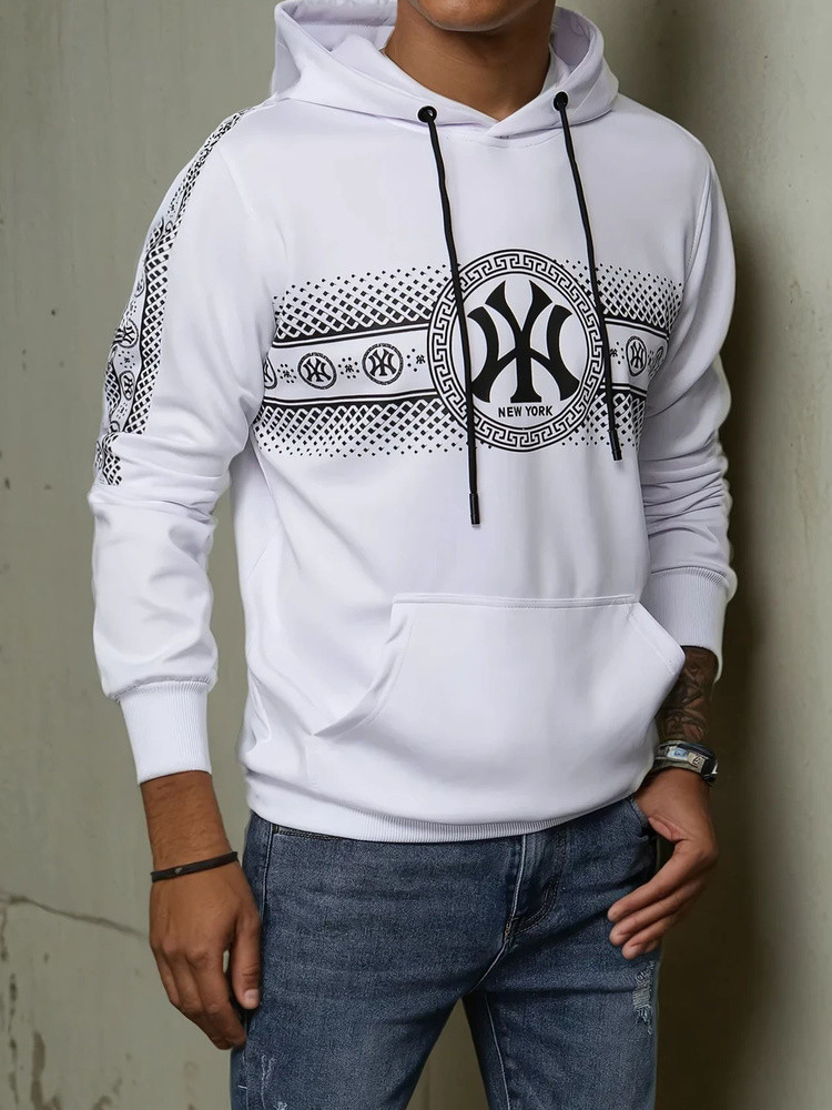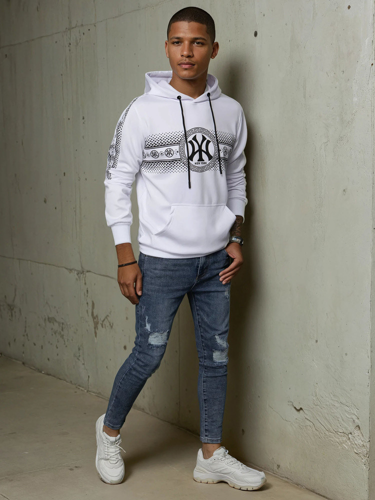 Pánská mikina s kapucí s potiskem bílá FashionStreet BX5567