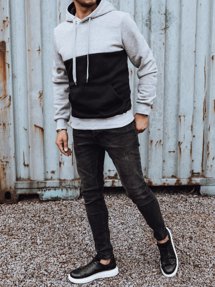 Pánská mikina s kapucí světle šedá FashionStreet BX5799