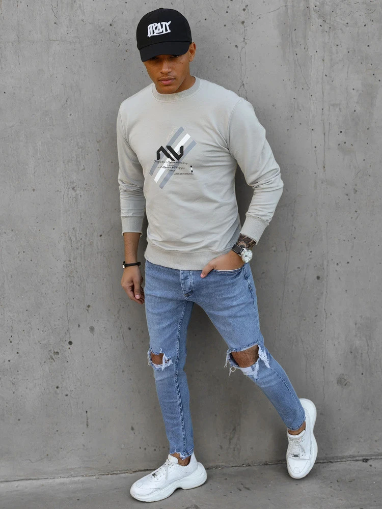 Pánská mikina s potiskem béžová Dstreet BX5363