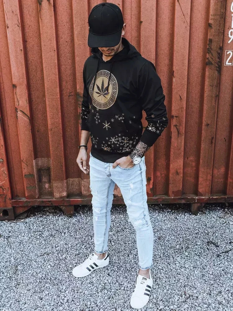 Pánská mikina s potiskem černá FashionStreet BX5325