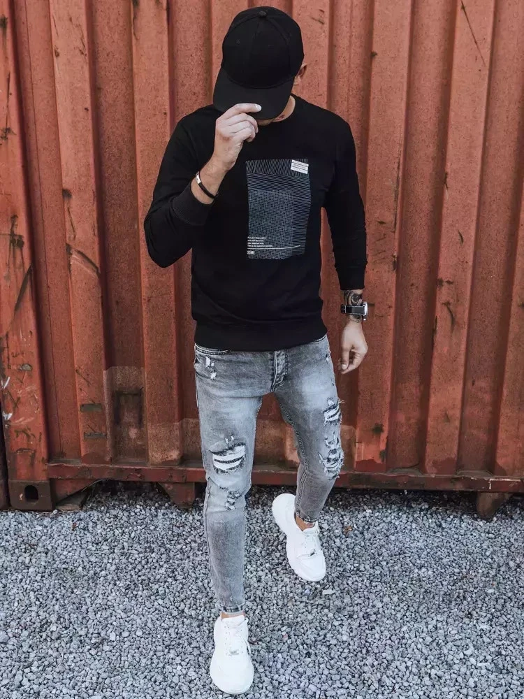 Pánská mikina s potiskem černá FashionStreet BX5353