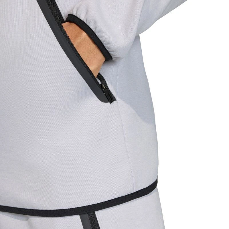 Bluza męska adidas Tiro 26 Travel Sweat Hoodie szara KF6077 Bluza męska adidas zadba o komfort poza boiskiem. Model pochodzi z piłkarskiej linii Tiro. Materiał łączy bawełnę oraz poliestrowe włókna. Długi, jednokierunkowy zamek zakończony patką ochronną. Dopasowany krój wykończony elastyczną lamówką. Obszerny kaptur z regulacją. Przednie, zapinane kieszenie. Materiał: 75% bawełna, 25% poliester z recyklingu