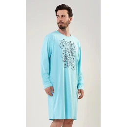 Pánská noční košile s dlouhým rukávem Kolo. Pánská noční košile s dlouhým rukávem má na hrudi obrázek několika kol. Použitý materiál je jemný a poddajný na dotek. Košile je vhodná na denní nošení.