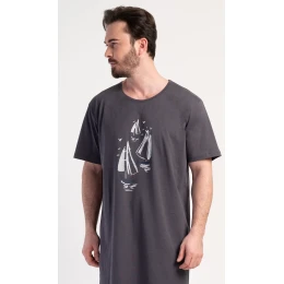 Pánská bavlněná noční košile s krátkým rukávem Jachting. Jednobarevná pánská noční košile s kulatým výstřihem má na hrudi obrázek se třemi loděmi. Tato košile je vhodným dárkem pro všechny milovníky moře, cestování a dálek. Použitý materiál je příjemný a poddajný na dotek. Obsah bavlny je 100%.