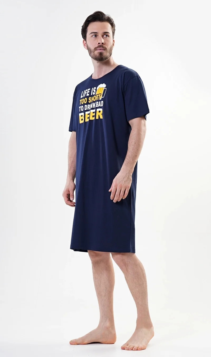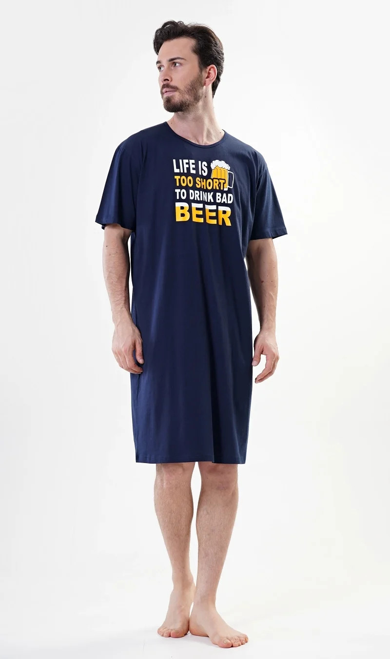 Pánská noční košile s krátkým rukávem Life is beer. Pánská noční košile pro všechny milovníky piva. Bavlněná noční košile je zdobená obrázkem piva a nápisem Life is too short to drink bad beer (život je příliš krátký na pití špatného piva). Použitý materiál je jemný a poddajný na dotek.