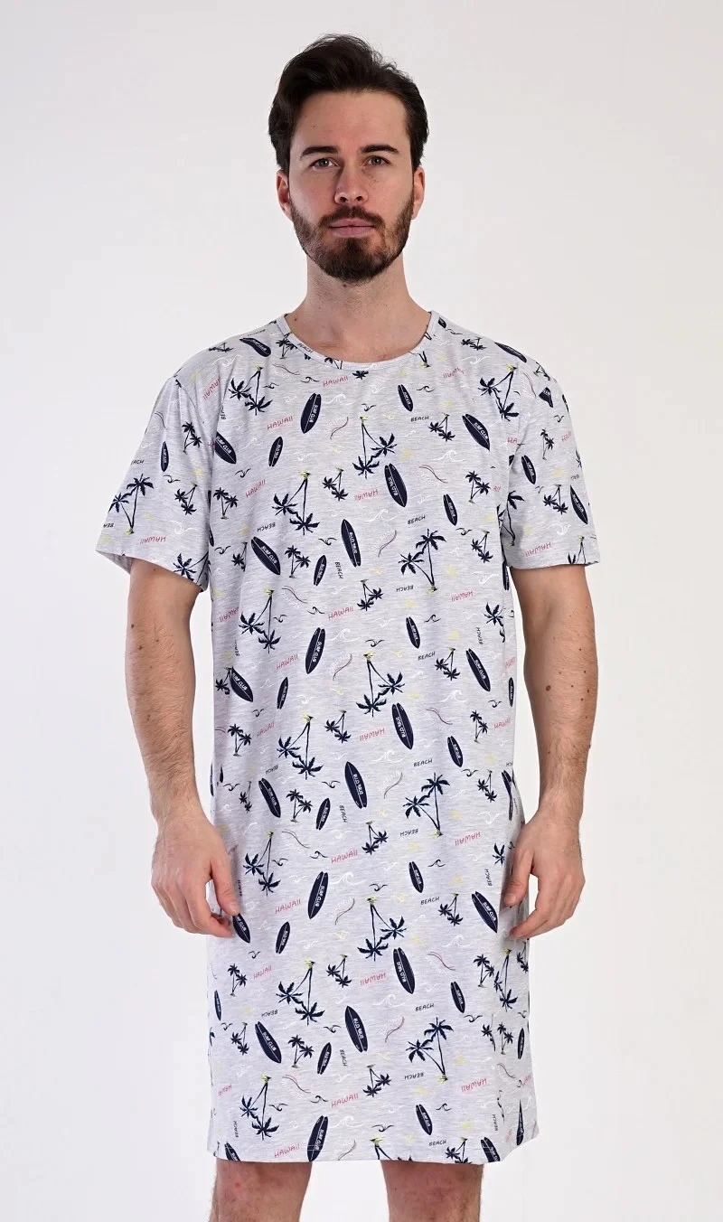 Pánská noční košile Surfing Šedá s potiskem - Vienetta
