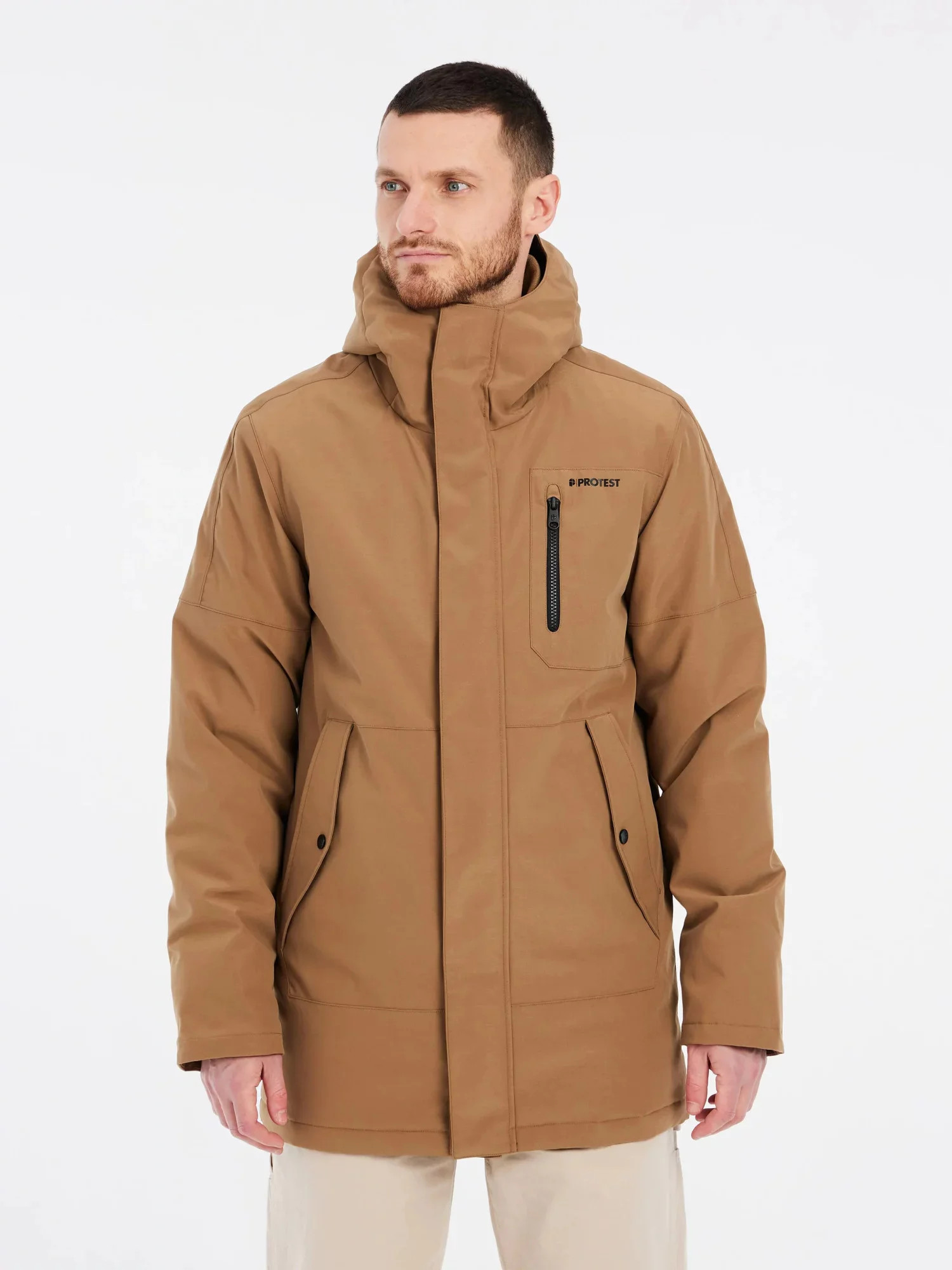 Bunda PRTHEMLEY od Protestu je vyrobena ze 100% polyesterové tkaniny s bavlněným vzhledem v nadčasové jednobarevné variantě.