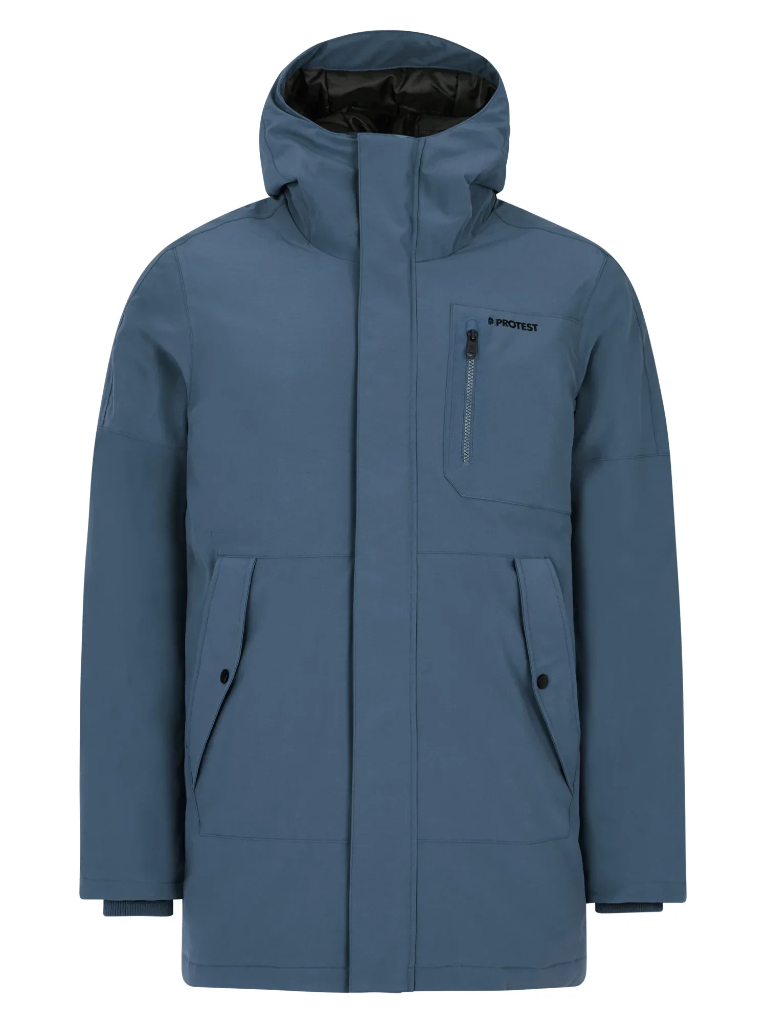 Bunda PRTHEMLEY od Protestu je vyrobena ze 100% polyesterové tkaniny s bavlněným vzhledem v nadčasové jednobarevné variantě.