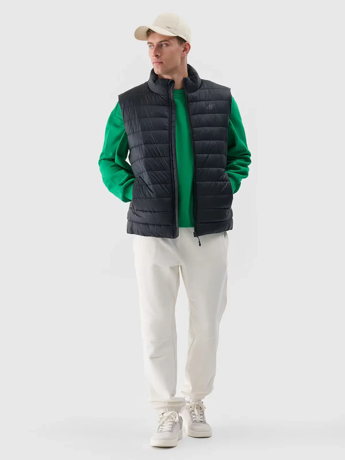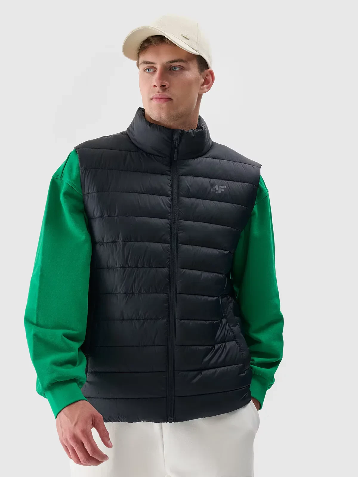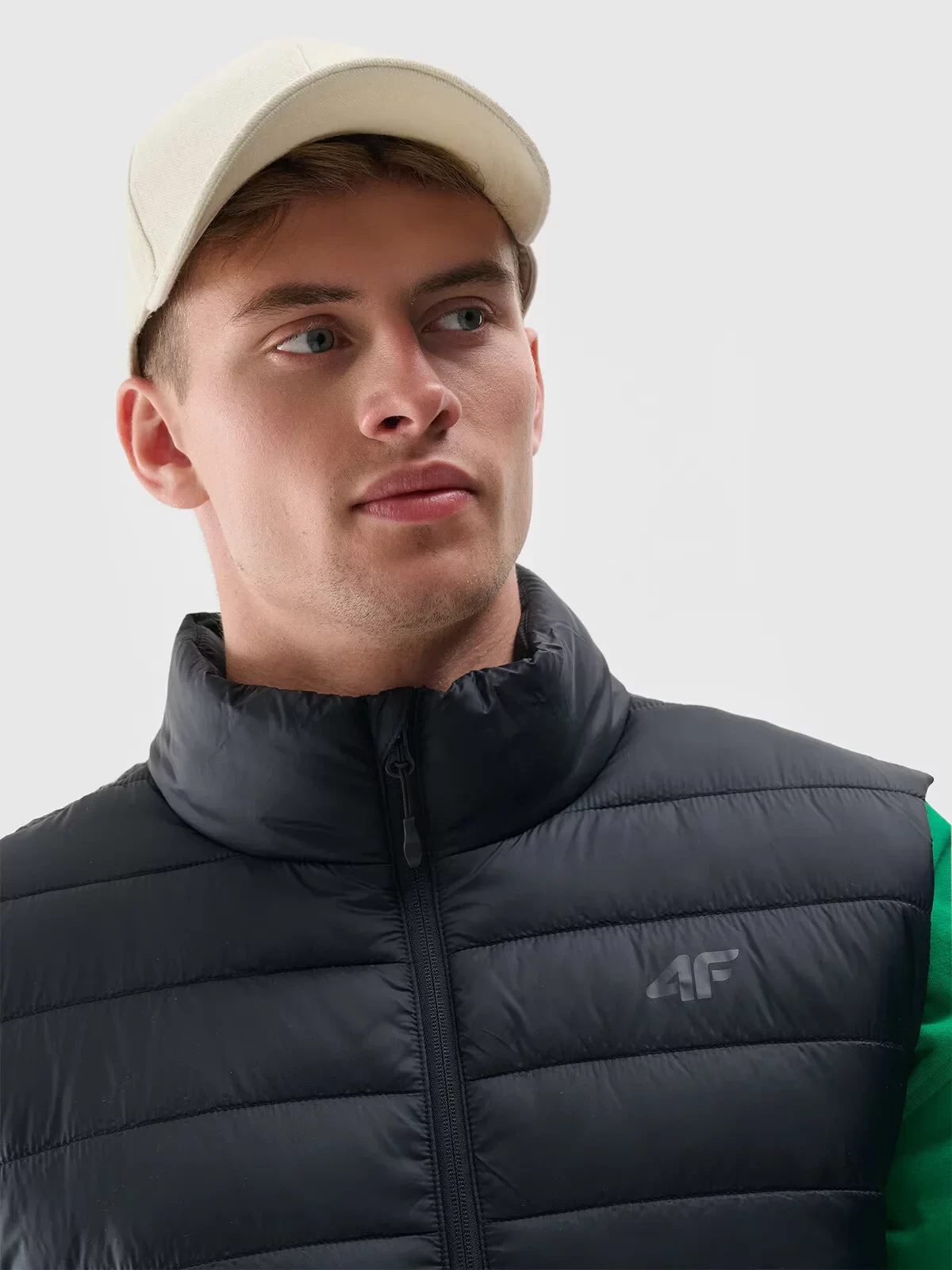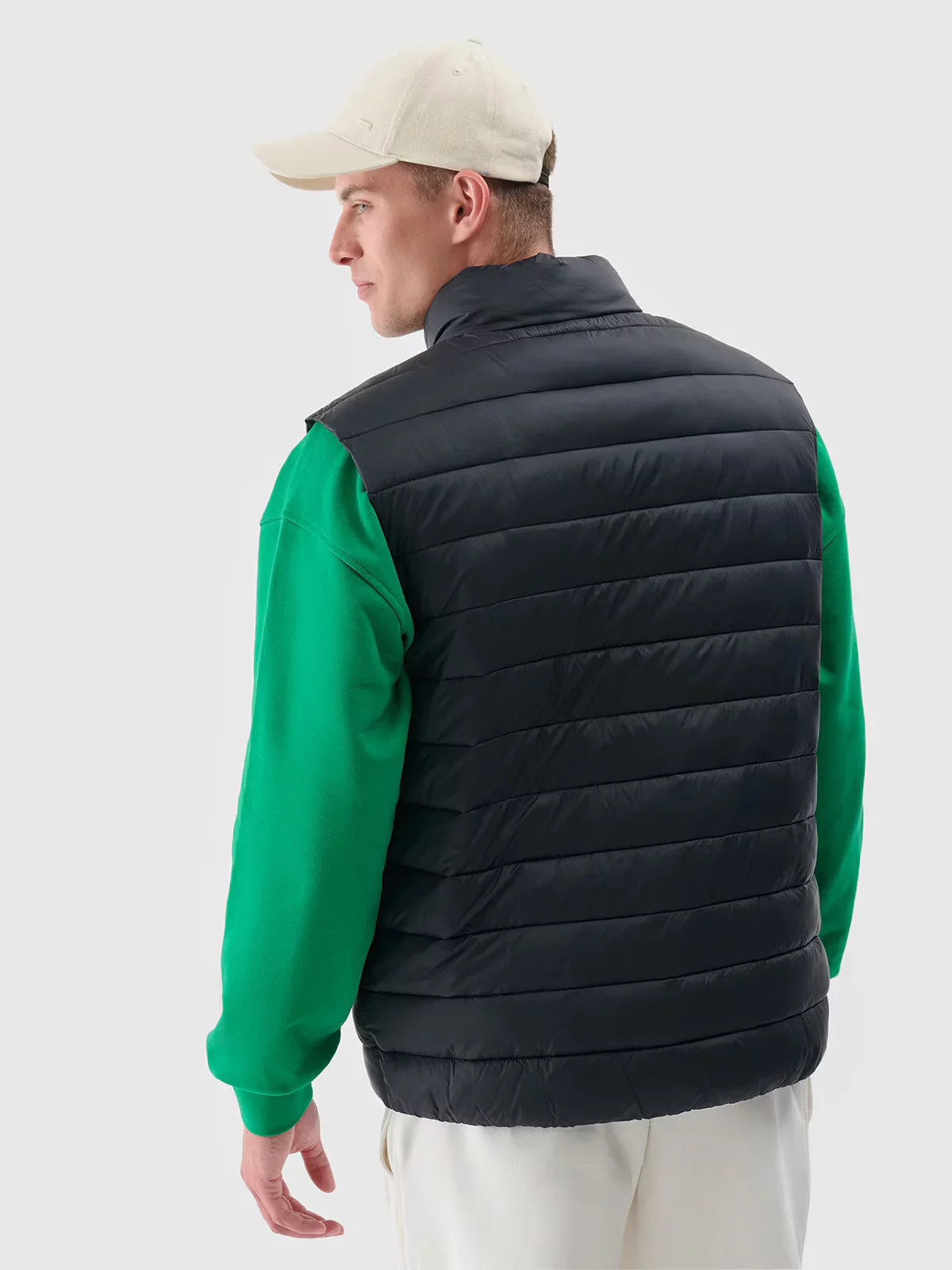 Pánská péřová vesta se stojáčkem a lehkou konstrukcí, díky čemuž ji můžete nosit během každodenních i sportovních aktivit v teplejších dnech v přechodném období.