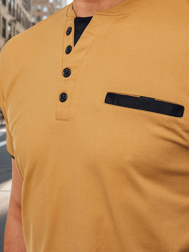 Męska koszulka z krótkim rękawem, która idealnie łączy casualowy styl z elegancją. Imituje wygląd klasycznego polo, dzięki czemu sprawdzi się zarówno na co dzień, jak i w bardziej swobodnych stylizacjach. Dekoracyjna kieszonka na piersi dodaje nowoczesnego akcentu. Zapewnia komfort przez cały dzień. Doskonała zarówno do jeansów, jak i chinosów, na co dzień oraz na wyjątkowe okazje.