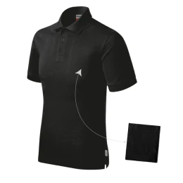 Pique, 100 % bavlna, nesrážlivá bavlna, odolná vůči teplotě do 95 °C (bílá) a 60 °C (barevná), střih se záhyby v bočním švu, límec a lemování z žebrovaného úpletu v poměru 1:1, léga se 3 knoflíky v barvě látky, vnitřní lemování stuhou ze stejné látky jako tričko, ramenní šev zpevněný páskou, našitá kapsa balená zvlášť pro snadné označení, výrobek s firemní etiketou v bočním švu k dispozici do vyprodání zásob.