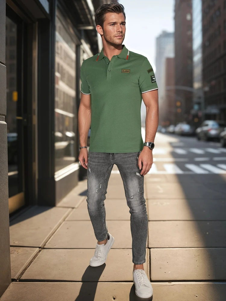 Pánská polokošile s nášivkami zelená Dstreet model 21987879 - FashionStreet