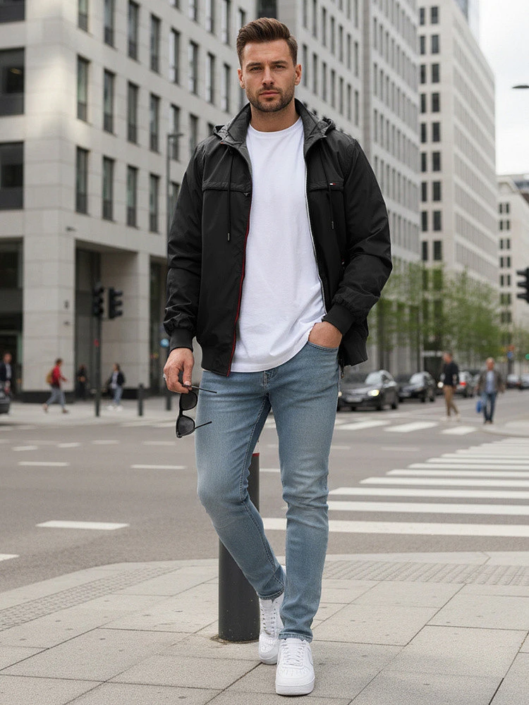 Bunda se dobře kombinuje s džínami a ležérními kalhotami a vytváří univerzální každodenní sestavy. Oboustranný tvar umožňuje její sladění s různými outfity a lehká konstrukce je ideální pro přechodná období. Hodí se na procházky po městě, do práce i na výlety.