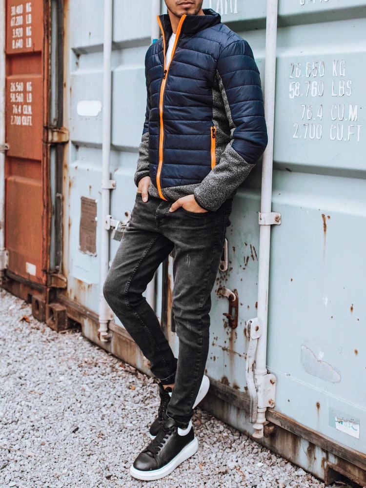 Pánská přechodná bunda prošívaná tmavě modrá FashionStreet TX3783
