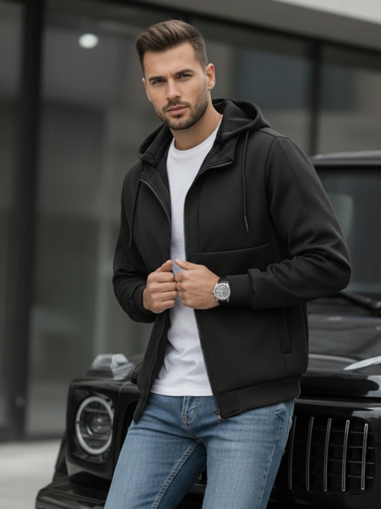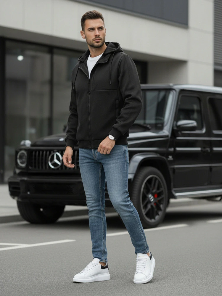 Pánská přechodná bunda s kapucí černá FashionStreet TX5016